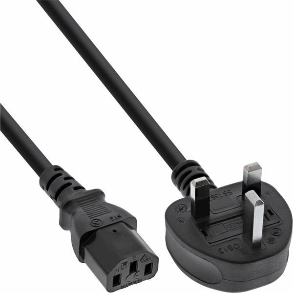 Kábel sieťový 230V, vidlica (BS1363A) UK lomená - C13, 1m, 0